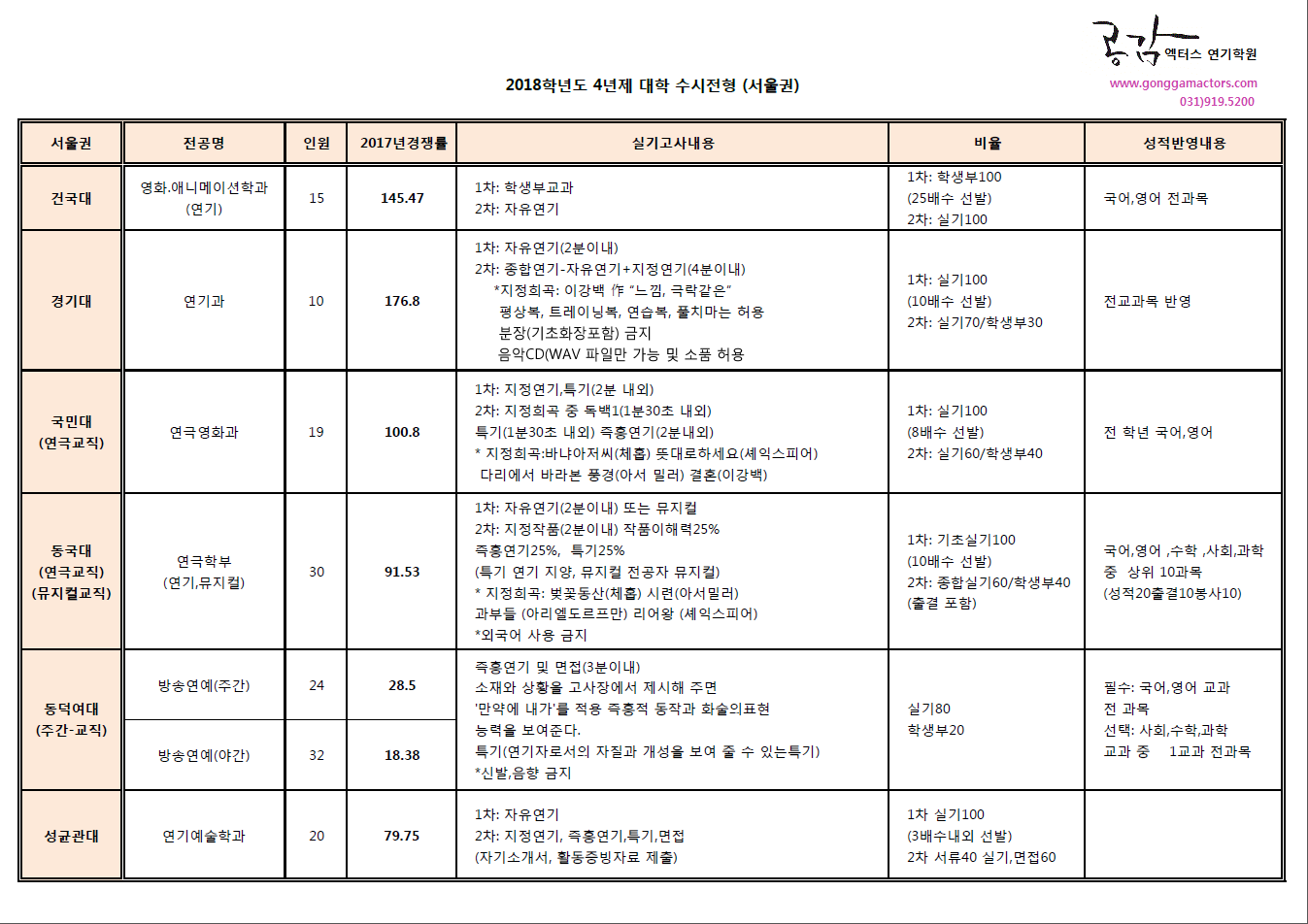 2018학년도 연극영화과 수시전형 서울권-1