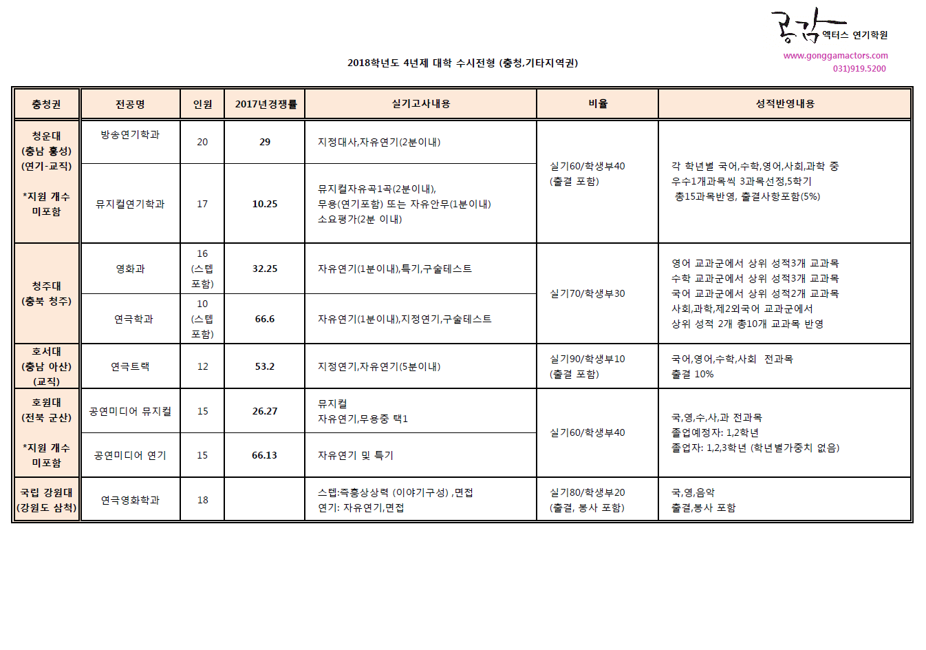2018학년도 연극영화과 수시전형 충청,기타지역권-2